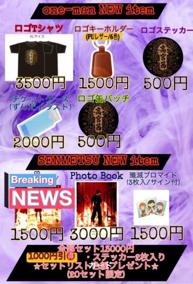 全部セットです!!!! 現地参戦の方は、現地支払いで大丈夫です! インスタDMに予約で取り置き可能です! こちらはワンマン来れない方の通販ようです!!